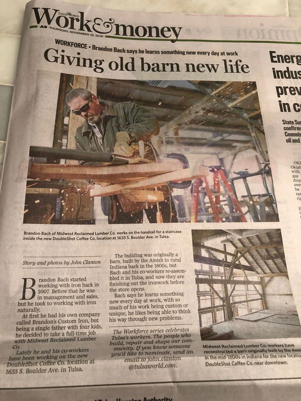 In a world that often overlooks the hands behind the craft, Brandon Bach stands as a testament to resilience, grit, and passion. A single father of four boys, Brandon’s journey hasn’t been easy. Balancing parenthood with hard labor, he transitioned from management into hands-on ironwork, finding his place in the raw and rewarding world of reclaimed lumber. With Midwest Reclaimed Lumber Co., he brought to life the new DoubleShot Coffee Co. location in Tulsa, where he operated the cranework, did all the ironwork, and personally erected the aged barnwood—salvaged from an 1800s Amish barn in Indiana. Every bolt turned and beam lifted carried not only the weight of history but also the story of a man providing for his family, one piece at a time.