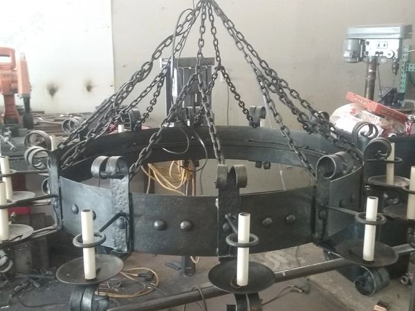 In a unique twist of fate, a cherished iron chandelier met an untimely end beneath the blades of a lawnmower. The original piece, a rustic, hand-forged light fixture that once brought old-world charm to its surroundings, was accidentally destroyed during an outdoor mishap. Tasked with resurrecting the piece, our workshop embraced the challenge of crafting a faithful replica that retained the character and craftsmanship of the original.